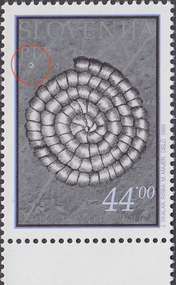 7 May 1993. Fossils of Dolžan Gorge. Printed in offset. Stamps printed: 150.000.