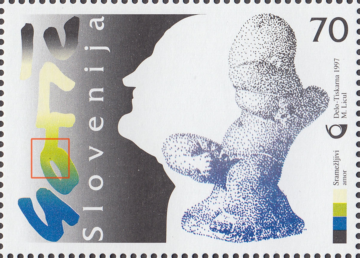 | 1 | A blue dot to the right of the letter J in SLOVENIJA. | ![]() |